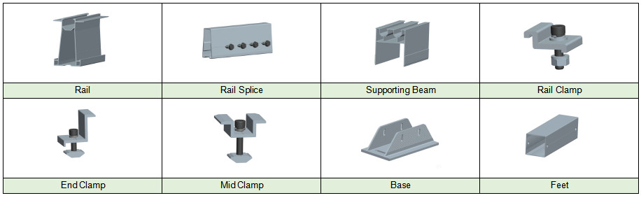 O sistema de montagem de garagem à prova d'água solar pode ser feito de alumínio. Normalmente inclui uma série de suportes ou trilhos que são presos ao telhado ou à superfície usando parafusos ou porcas.