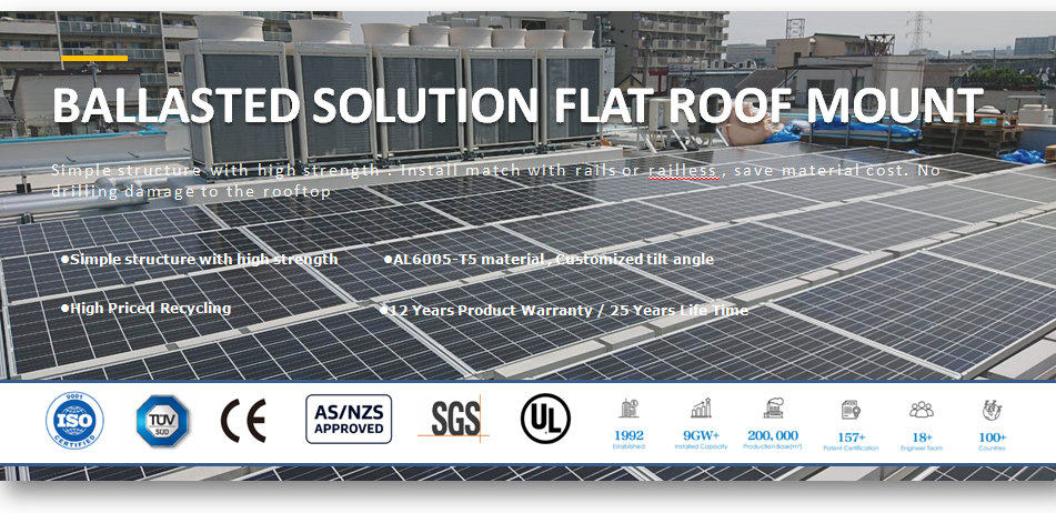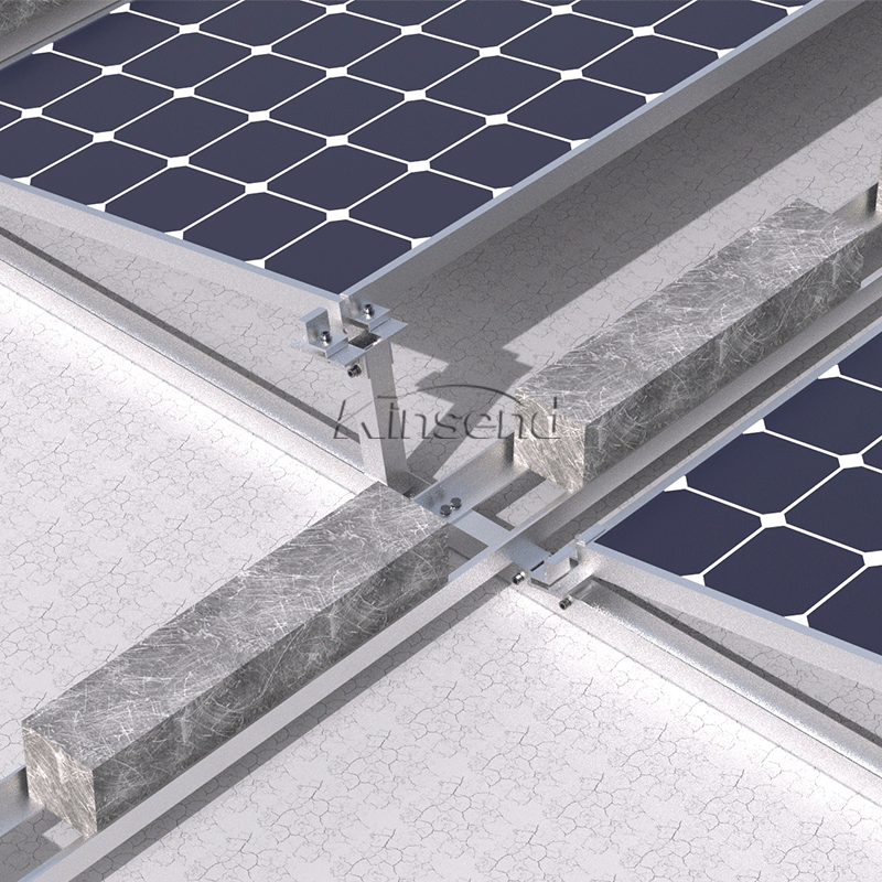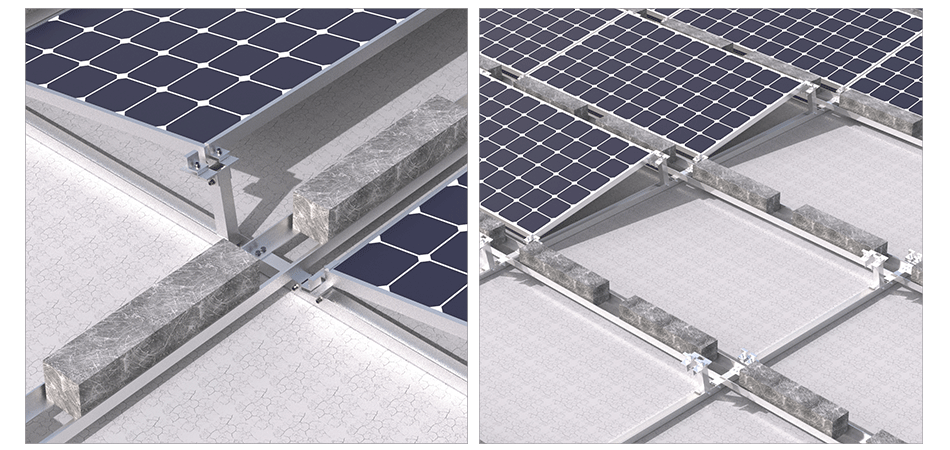 O sistema de montagem em telhado plano com tripé de lastro é relativamente fácil de instalar e pode ser feito rapidamente, o que pode reduzir o tempo de instalação e os custos de mão de obra. O sistema de montagem em telhado plano com tripé de lastro é uma solução eficaz e eficiente para instalações de painéis solares em telhados planos que exigem estabilidade e segurança sem a necessidade de penetração no telhado.