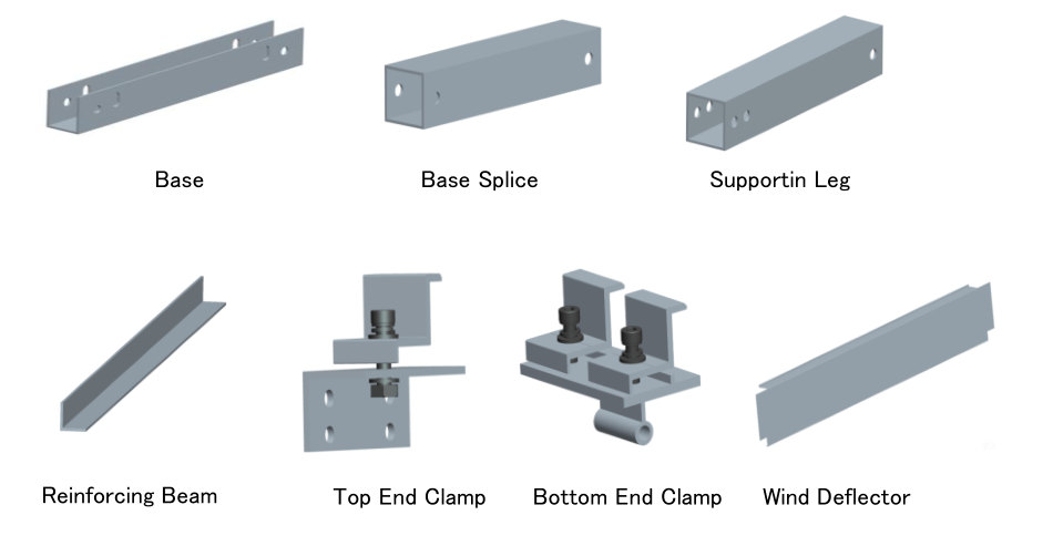 Al6005-T5 para perfis e braçadeiras de alumínio. Aço inoxidável para fixação de parafuso e porca. |