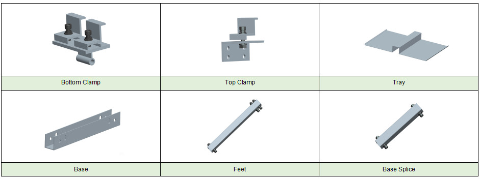 instalar o site telhado plano / campo aberto velocidade máxima do vento ≤60m / s carga de neve ≤ 1,4 KN / M2 ângulo de inclinaçao 0 - 15 grau módulo aplicável emoldurado ou sem moldura padrões AS / NZS 1170, ASCE 7 - 10, JIS2017 material AL6005 - T5, SUS304 Anti - corrosivo anodizado cor prata garantia Garantia de 10 anos