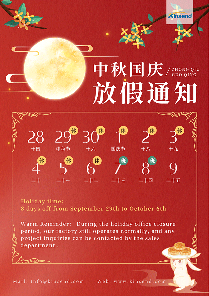 Lembrete caloroso: Durante o período de fechamento do escritório nos feriados, nossa fábrica ainda funciona normalmente e qualquer dúvida sobre o projeto pode ser contatada pelo departamento de vendas.