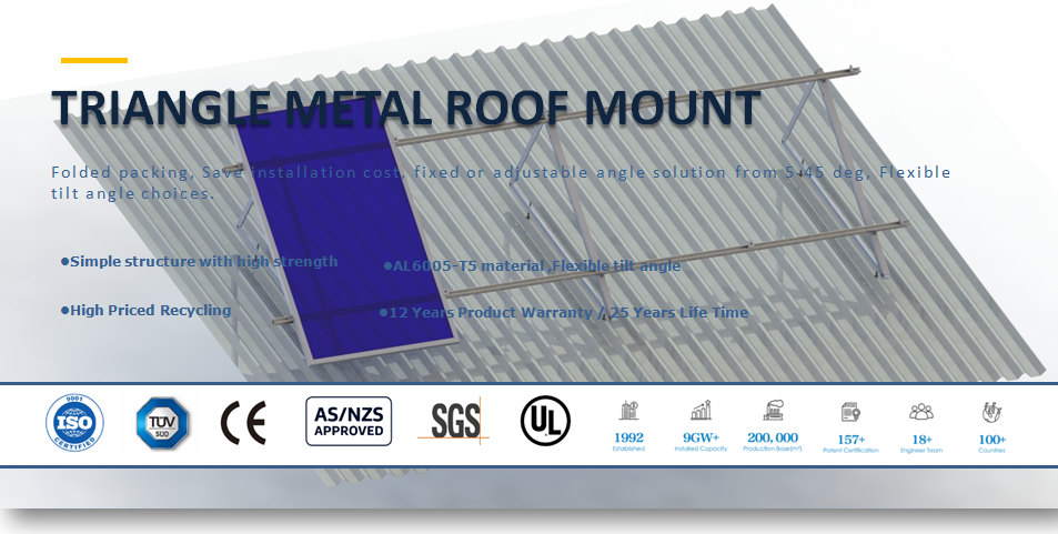 O sistema de montagem de suporte triangular para telhado de metal é um tipo de sistema de montagem projetado para telhados de metal. Ele usa suportes de forma triangular que são fixados ao telhado de metal usando parafusos ou outros fixadores.
