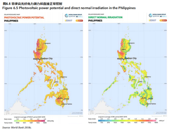 O tamanho do mercado e as potenciais filipinas têm recursos energéticos solares moderados e sua média solar irradiância distribuição é relativamente média. O país Dependência de combustíveis importados (sobre metade da oferta [Irena 2014]), a crescente demanda e a sua localização insulares levaram a um interesse crescente em energia renovável e solar fotovoltaica.