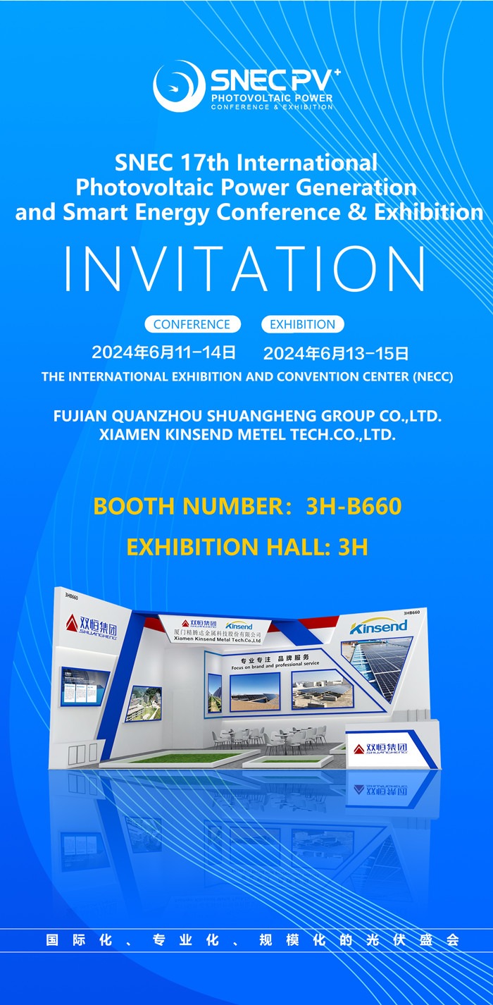 Após anos de desenvolvimento no campo da energia, Kinsend fez grandes progressos no campo da energia solar fotovoltaica na China e internacionalmente. Também recebemos o convite do organizador do SENC e apresentaremos uma variedade de produtos de suporte fotovoltaico nesta exposição, aguardando sua chegada.