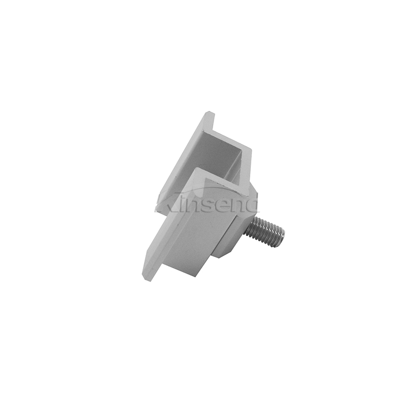 O grampo de extremidade de filme fino para painel solar é feito de alumínio AL6005 - T5, combinado com EPDM almofadas, instale firmemente o painel nos trilhos.