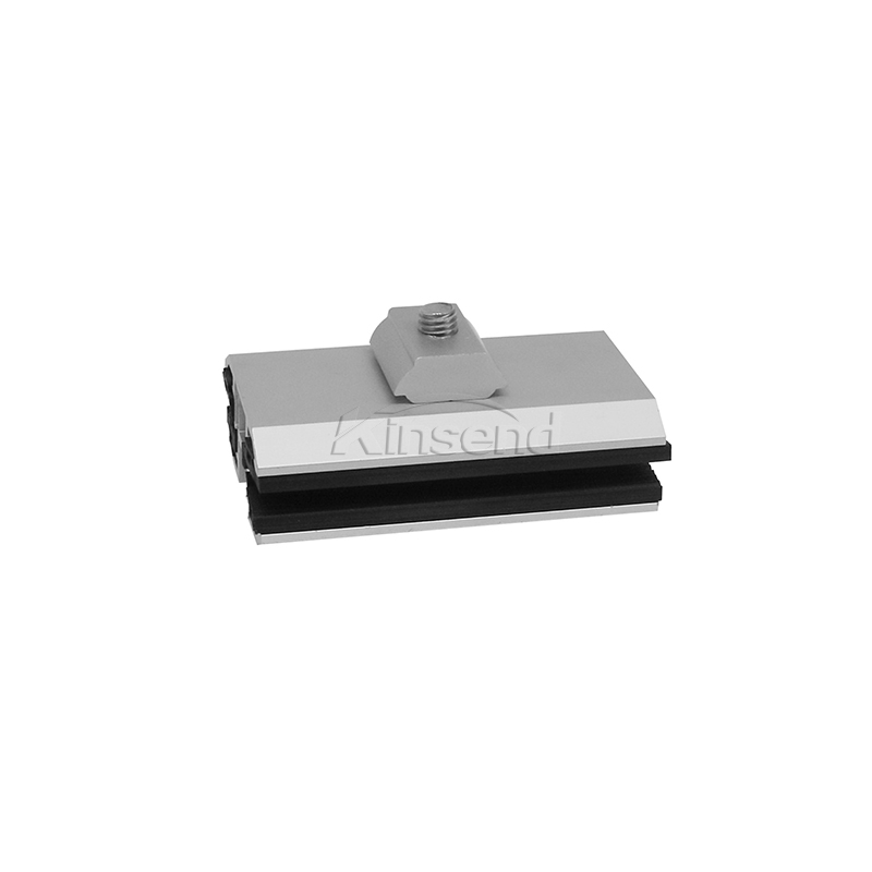 O grampo intermediário de filme fino para painel solar é feito de alumínio AL6005 - T5, combinado com EPDM almofadas, aperte firmemente o frameless painel sobre trilhos.