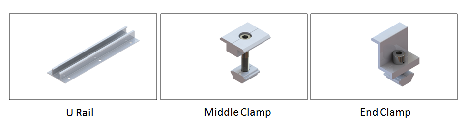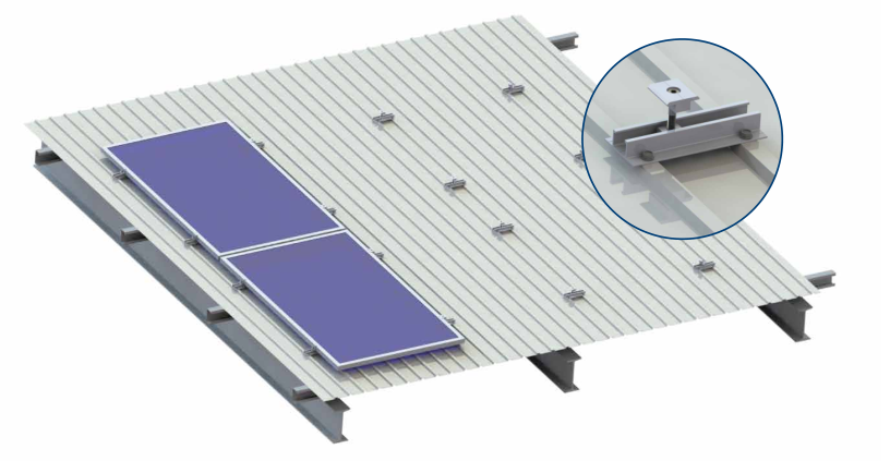 Trilhos leves podem ser instalados em telhados de metal. A estrutura em forma de U é uma combinação de trilhos de guia e braçadeira. baixo custo e rápida instalação. Rebitado ou aparafusado em ondulações elevadas.