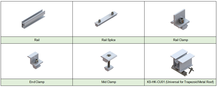Sistema de montagem de telhado de metal trapezoidal fixo, fácil de instalar.